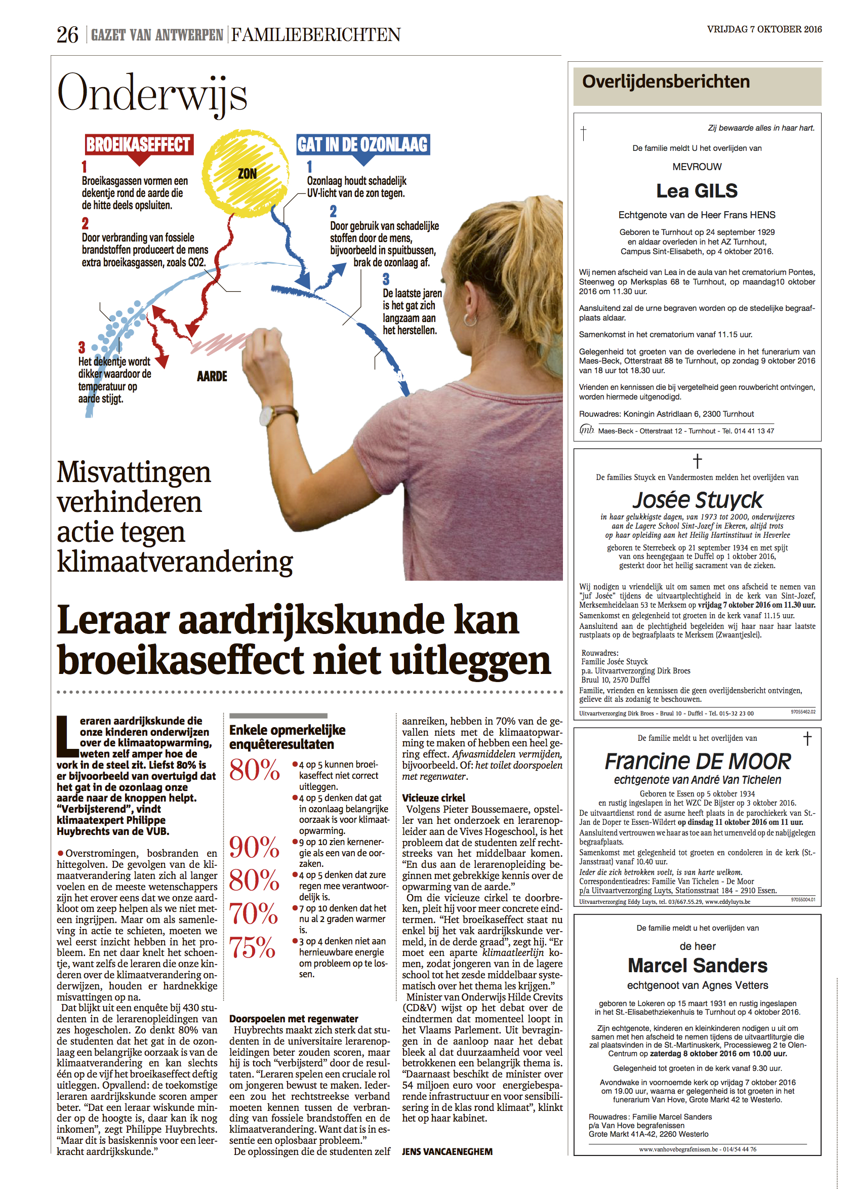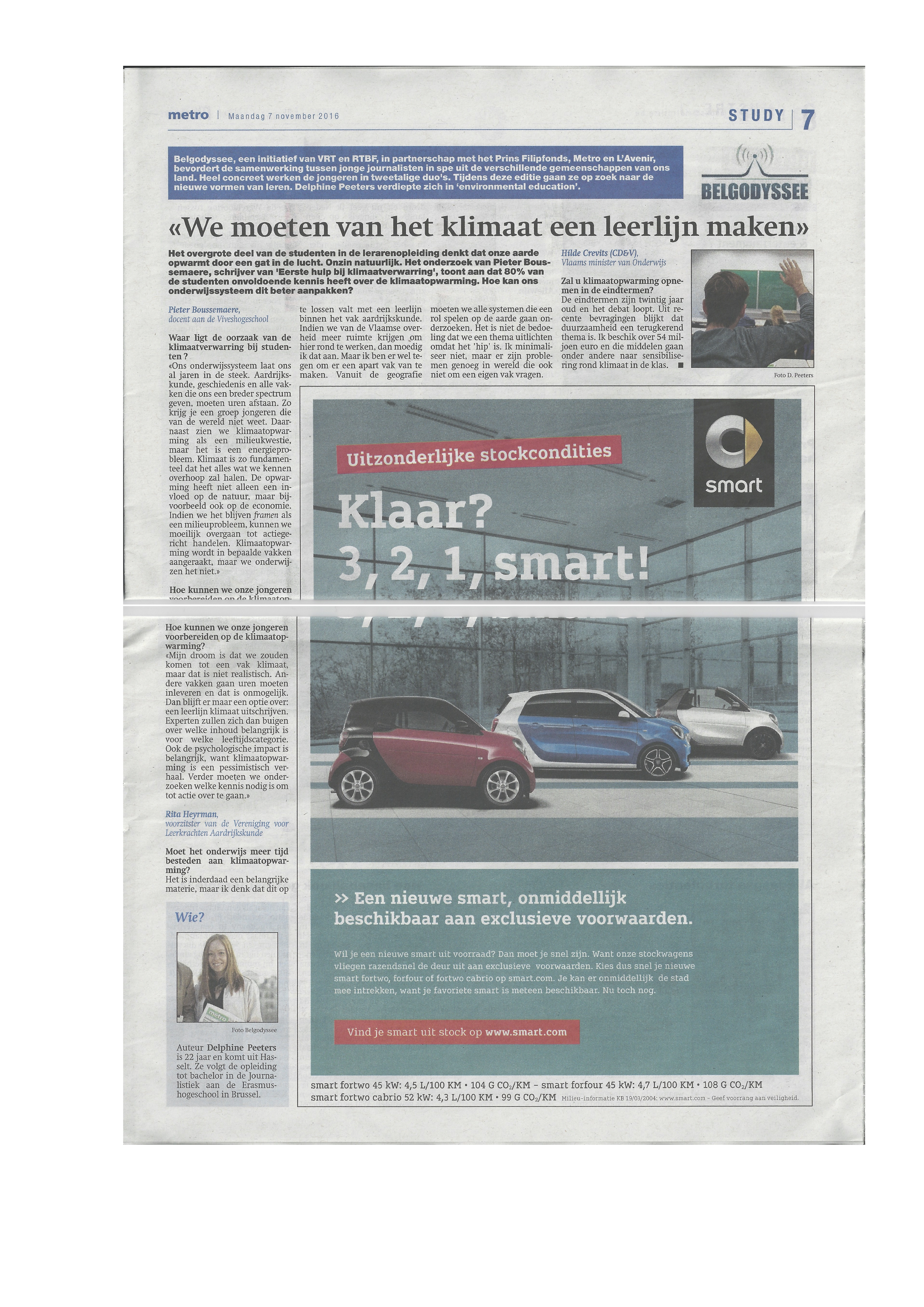 De Morgen (16/11/2019) ‘Klimaatles in het secundair onderwijs: goed idee of niet nodig?‘
